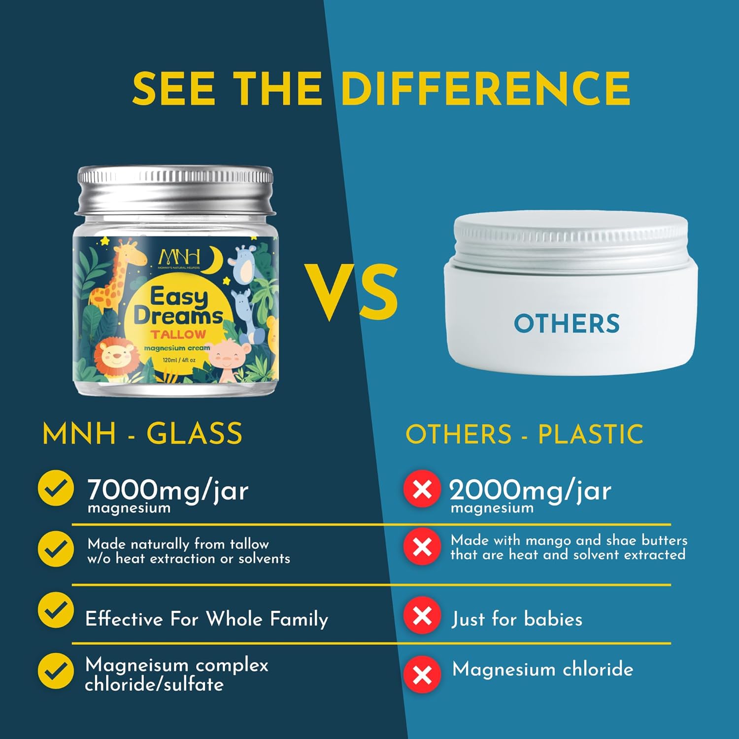 Unlike other brands that use mango and shea butters extracted with heat and toxic solvents like hexane, which create inflammatory compounds, our organic grass-fed and finished tallow base inherently increases magnesium absorption without harmful byproducts. Tallow, which is naturally high in vitamin D, potentiates magnesium by boosting absorption and increasing effectiveness. This powerful combination enhances strength, and delivers maximum benefits with every use.